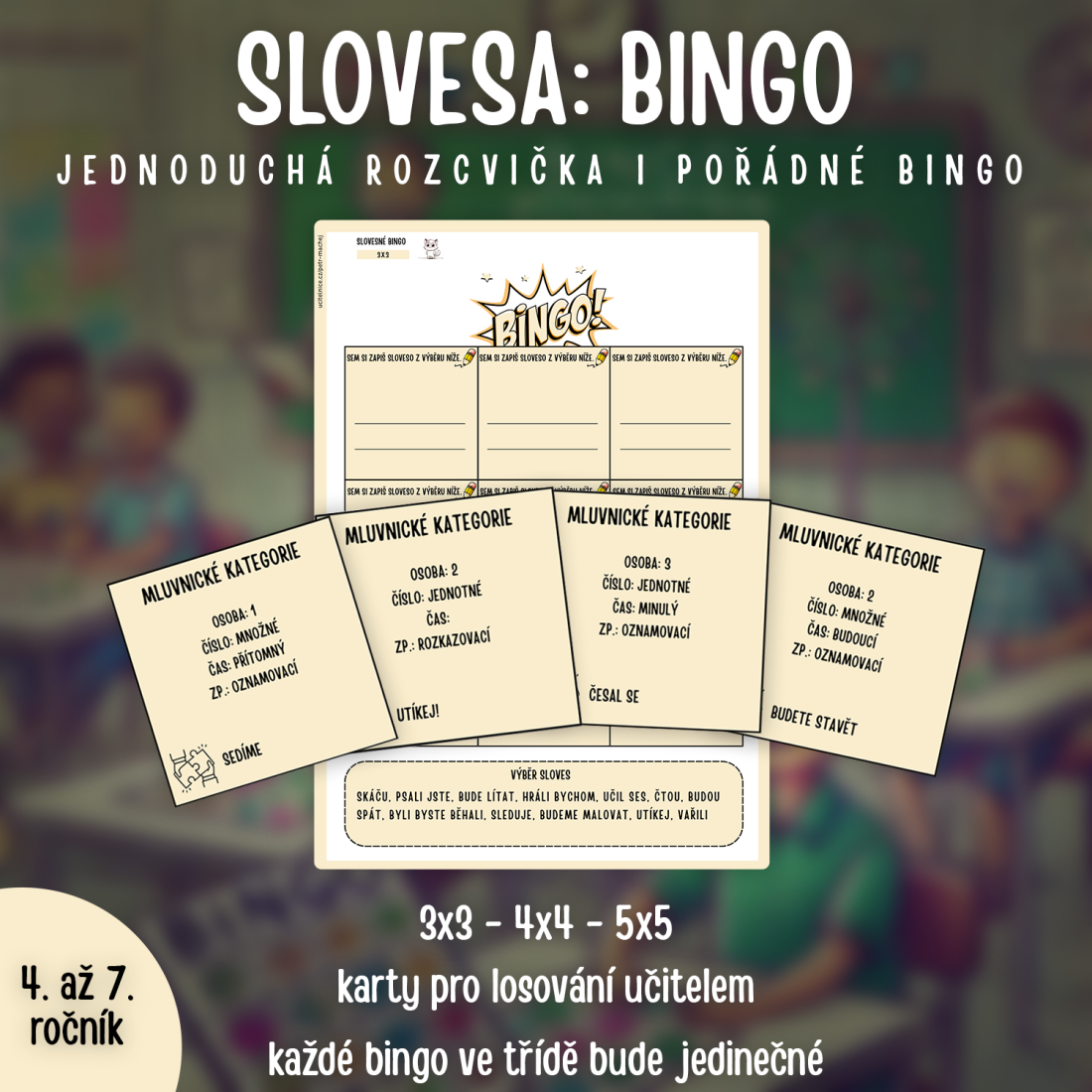 Po přihlášení do Petrova newsletteru získáš zdarma třeba parádní bingo k procvičování mluvnických kategorií sloves. Nechceš se přihlásit, ale materiál chceš? Je k prodeji. 🙂