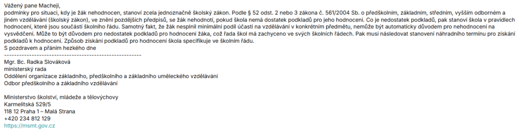 Screen výše obsahuje celý e-mail (ne kompletní emailovou komunikaci včetně položení dotazu aj.)